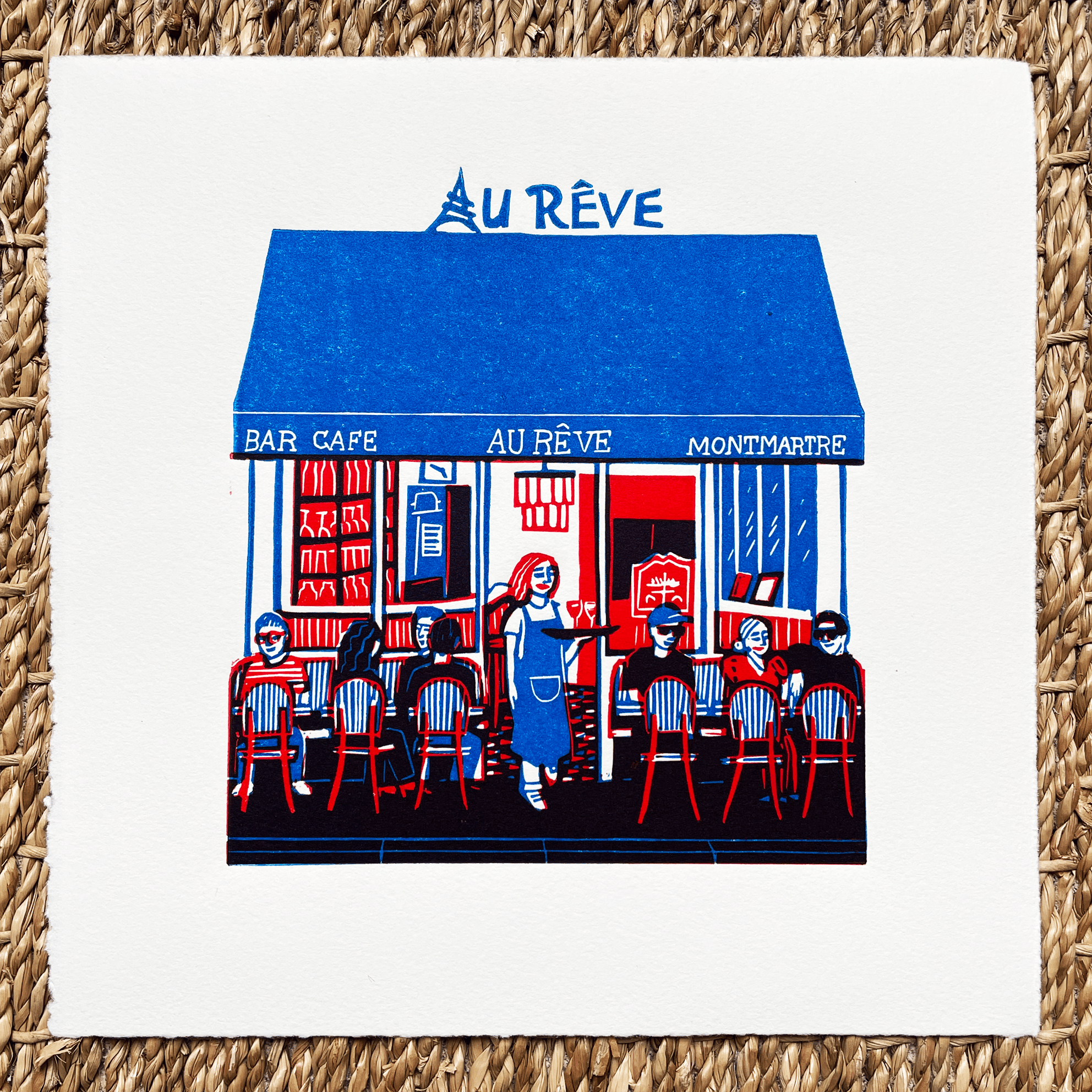 Handprinted linocut (2 colours) Limited Edition : 10 Paper : Velin d'Arche 160g Numbered and signed 20cm x 20cm Unframed