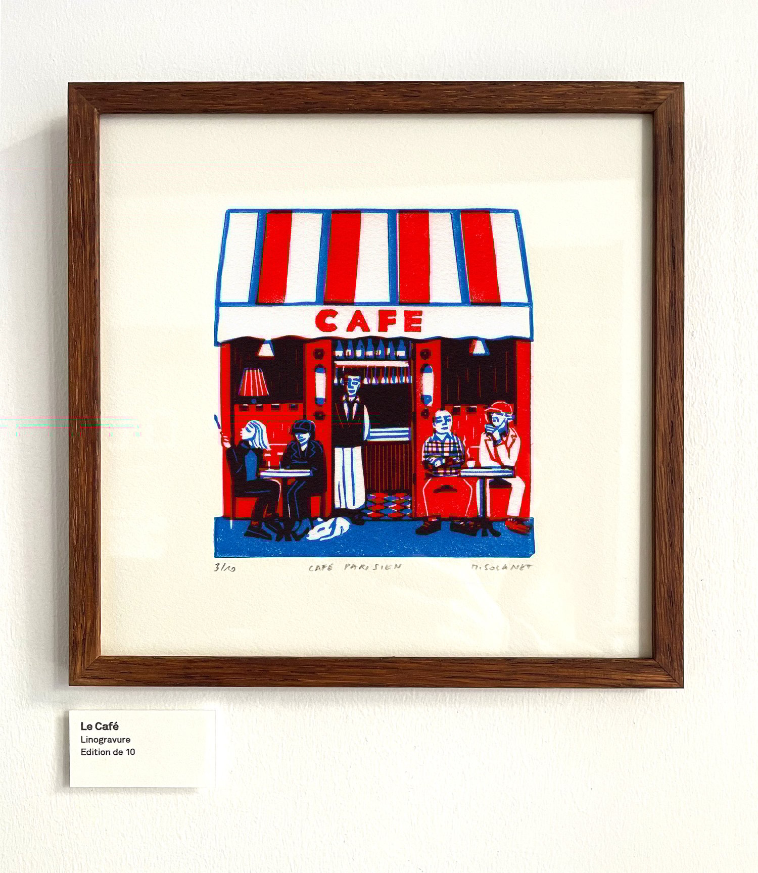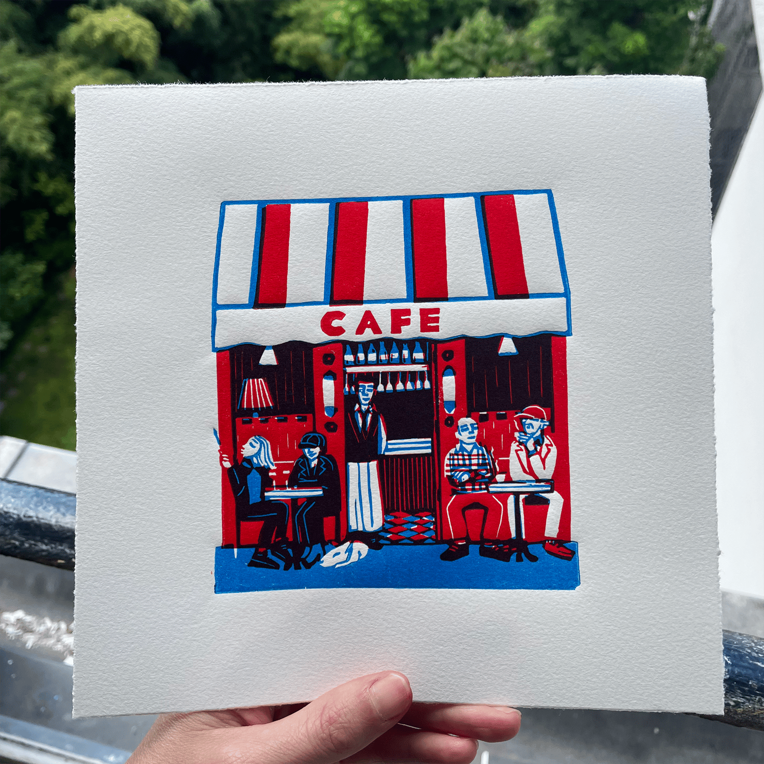 Handprinted linocut (2 colours) Limited Edition : 10 Velin d'Arche 160g Numbered and signed 20cm x 20cm Unframed