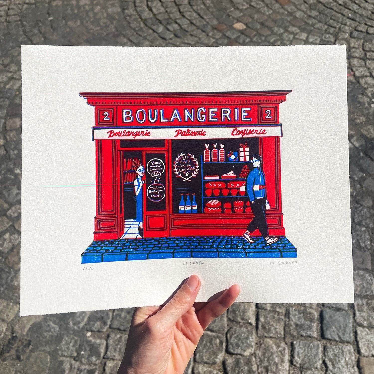 Handprinted Linocut (2 colours) Limited Edition: 10 Paper: Velin d'Arche 160g Numbered and signed 24cm x 30cm Unframed