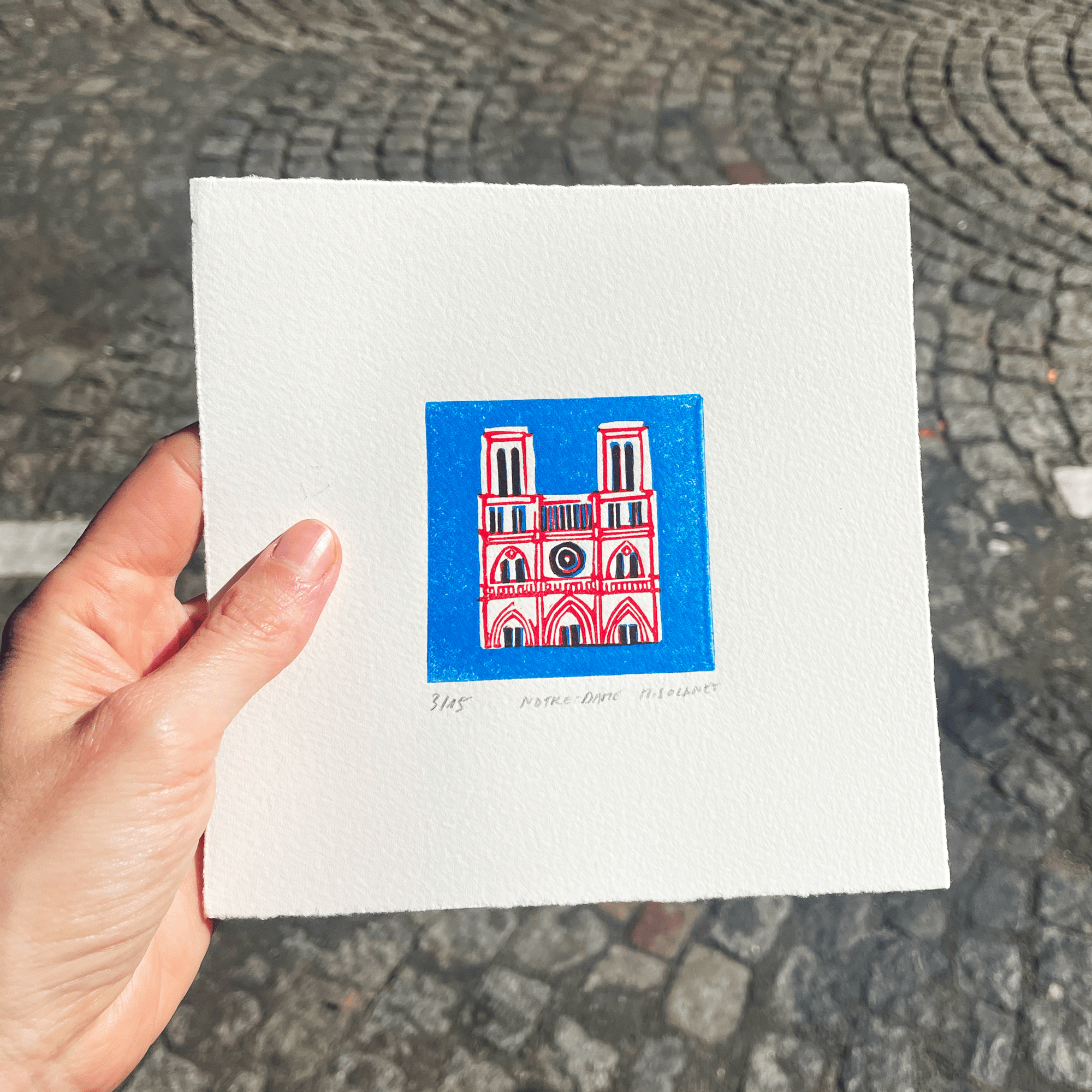 Handprinted linocut (2 colours) Limited Edition: 15 Paper: Velin d'Arche 160g Signed 15cm x 15cm Unframed
