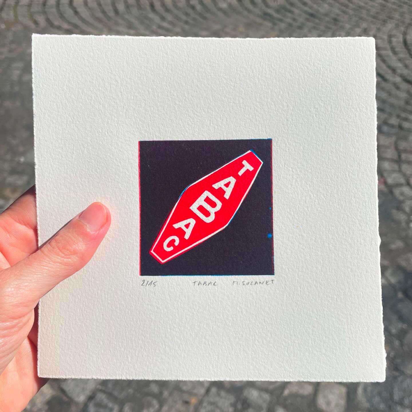 Handprinted linocut (2 colours) Limited Edition: 15 Paper: Velin d'Arche 160g Numbered adn signed 15cm x 15cm Unframed